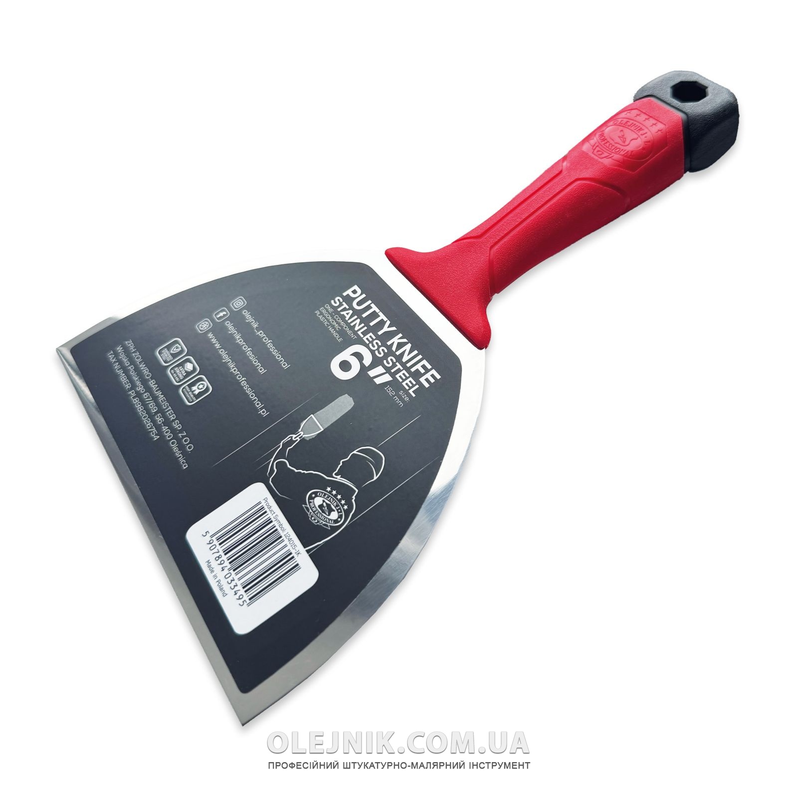 Однокомпонентний шпатель 150мм із загартованої нержавіючої сталі із ергономічною формою OLEJNIK