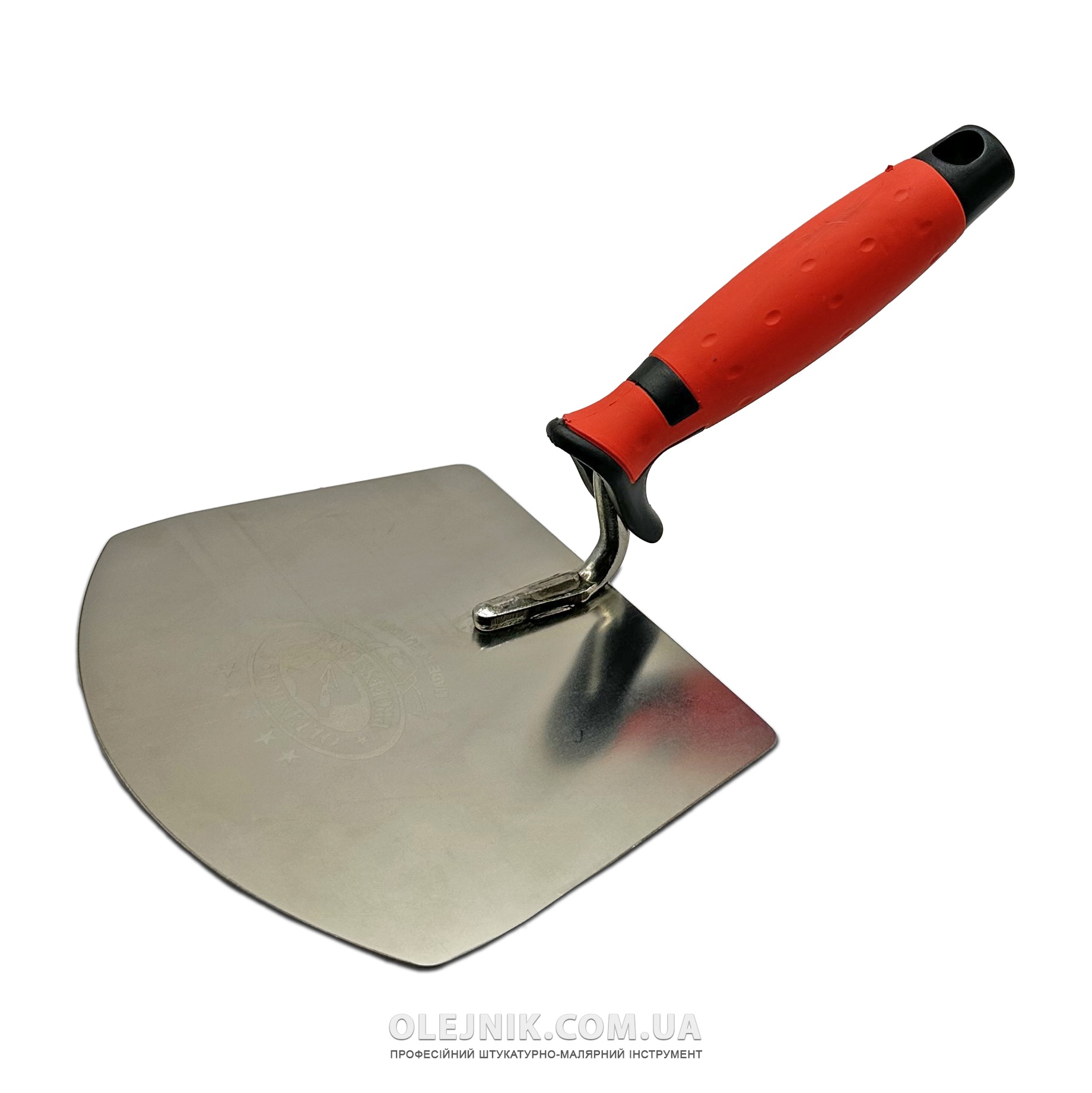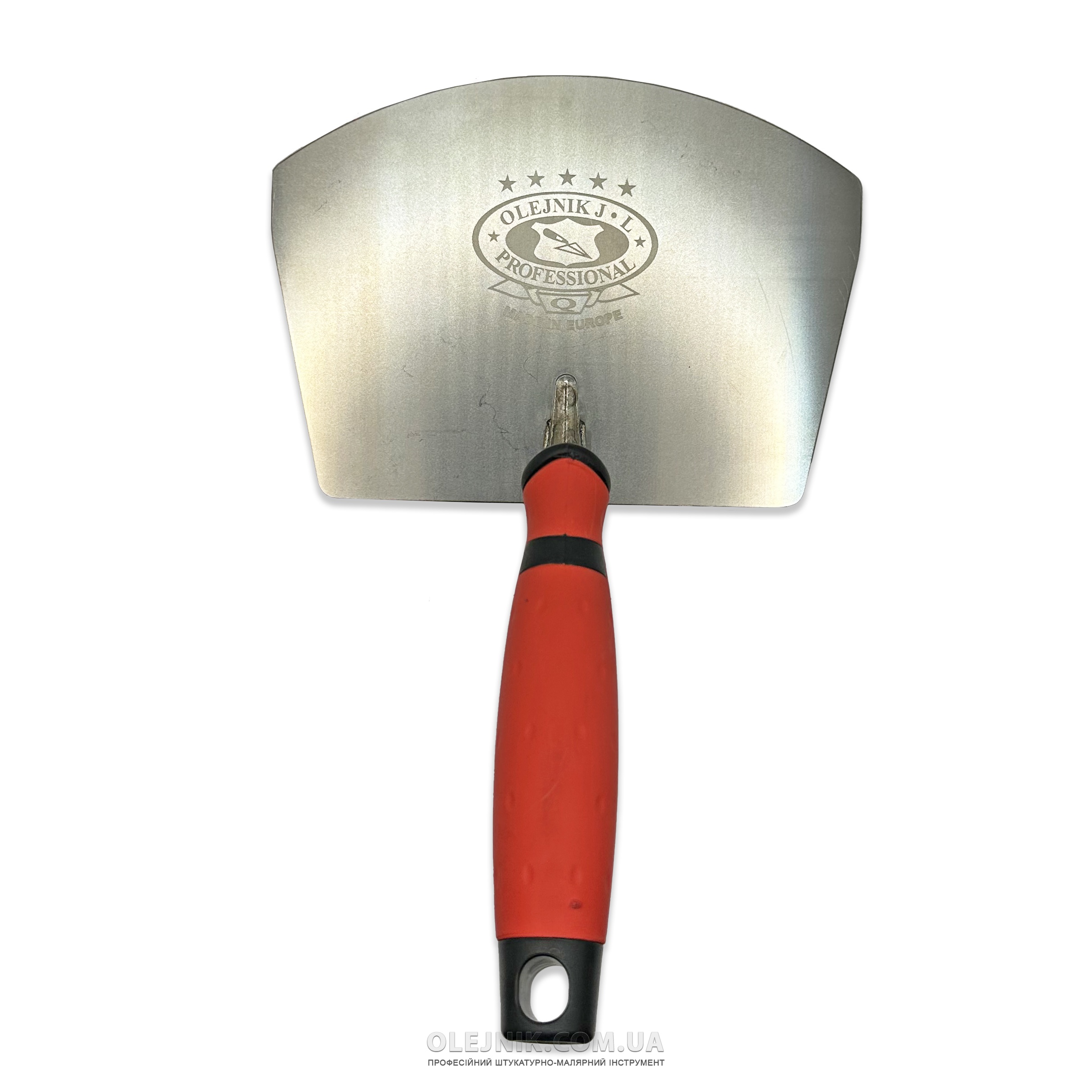 Професійний напівкруглий шпатель Olejnik ідеально підходить для зняття залишків матеріалу зі стінок відра.