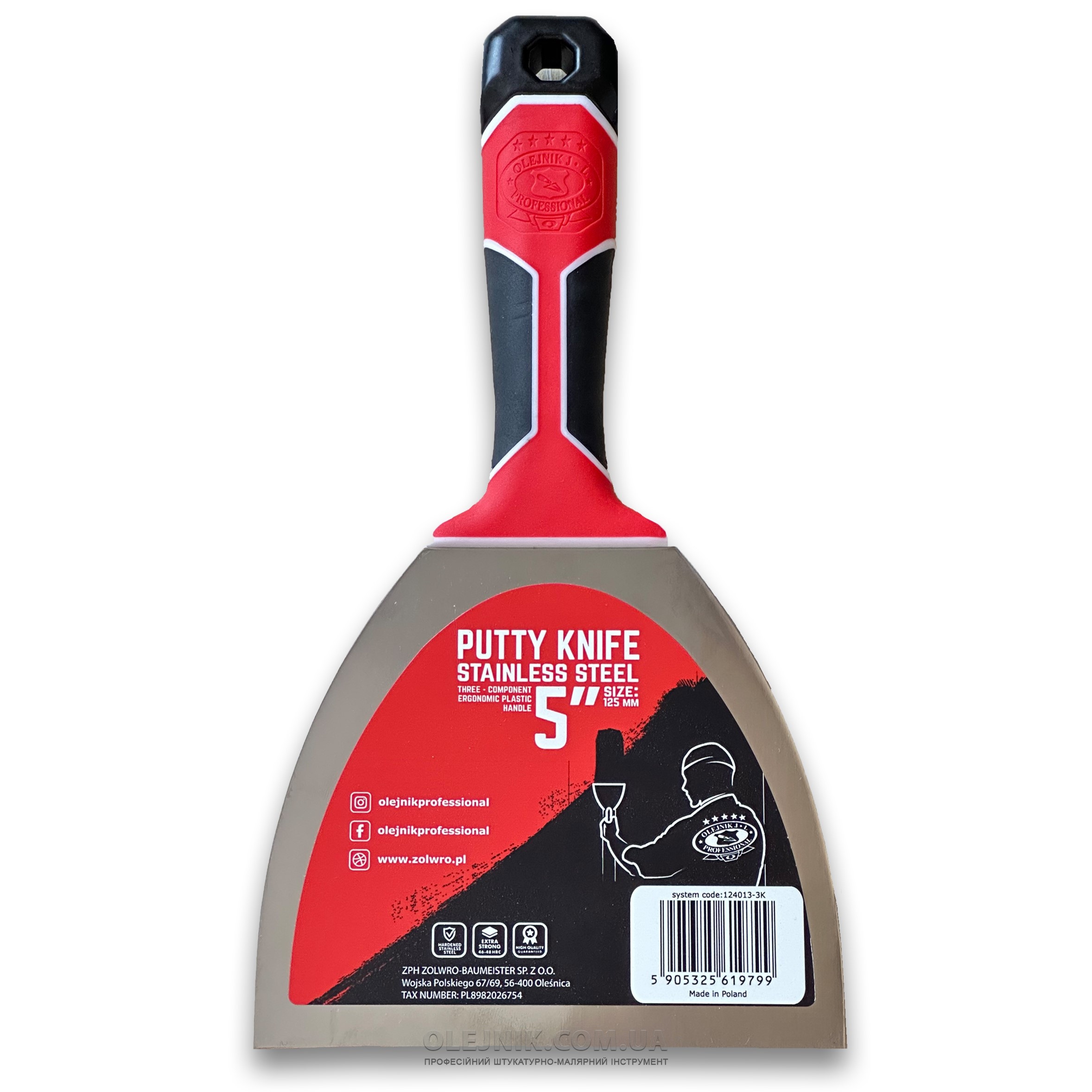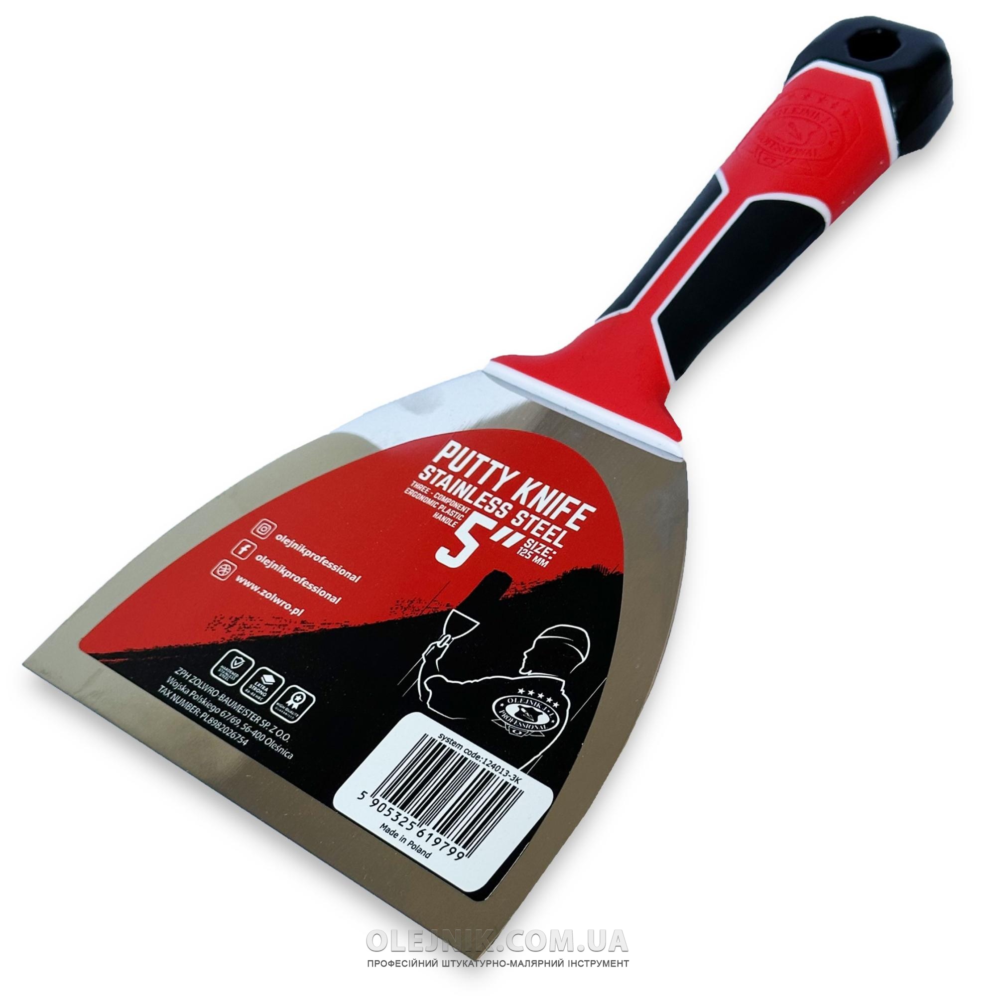 Шпатель 125мм із загартованої нержавіючої сталі з ергономічною трьохкомпонентною ручкою OLEJNIK