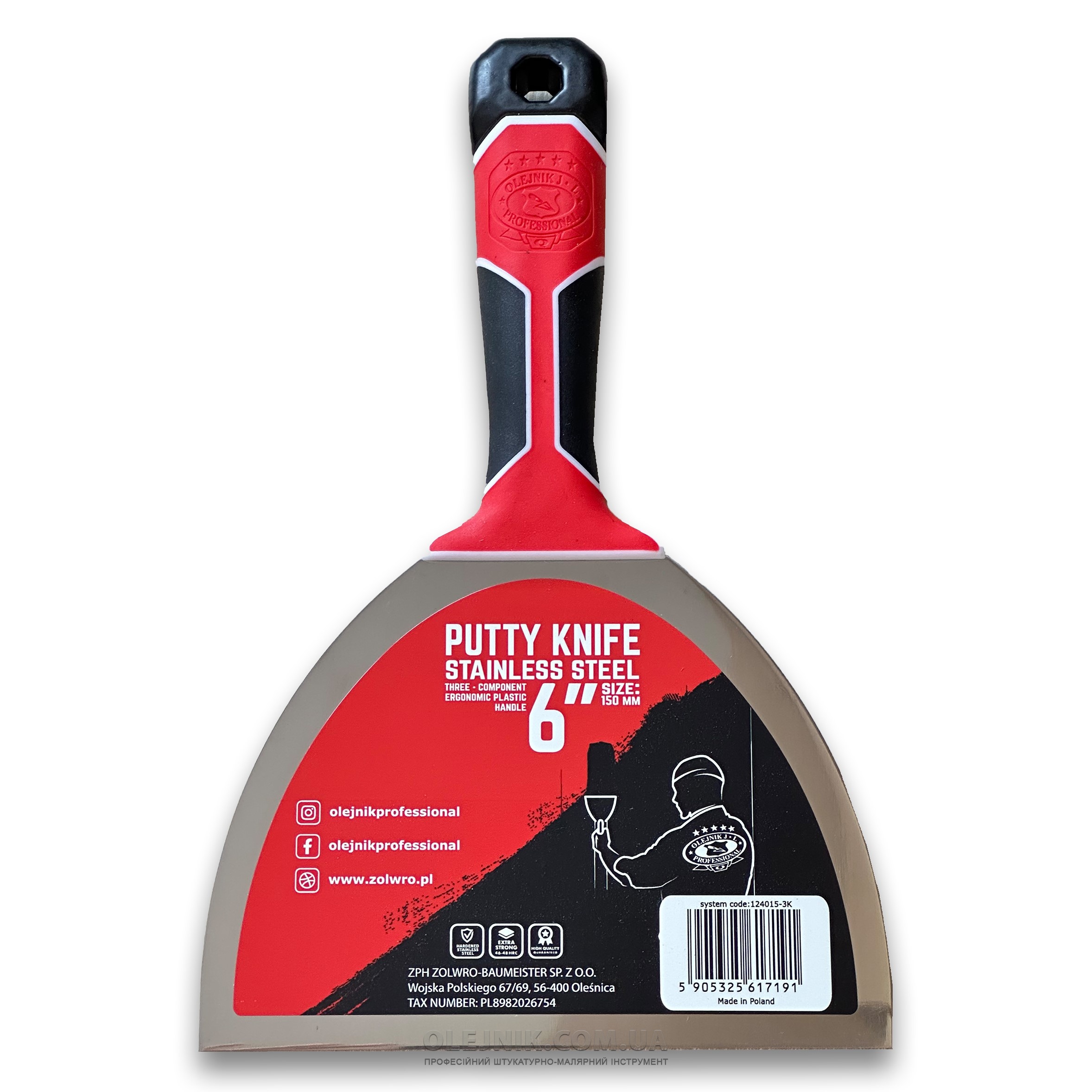 Шпатель 150мм із загартованої нержавіючої сталі з ергономічною трьохкомпонентною ручкою OLEJNIK