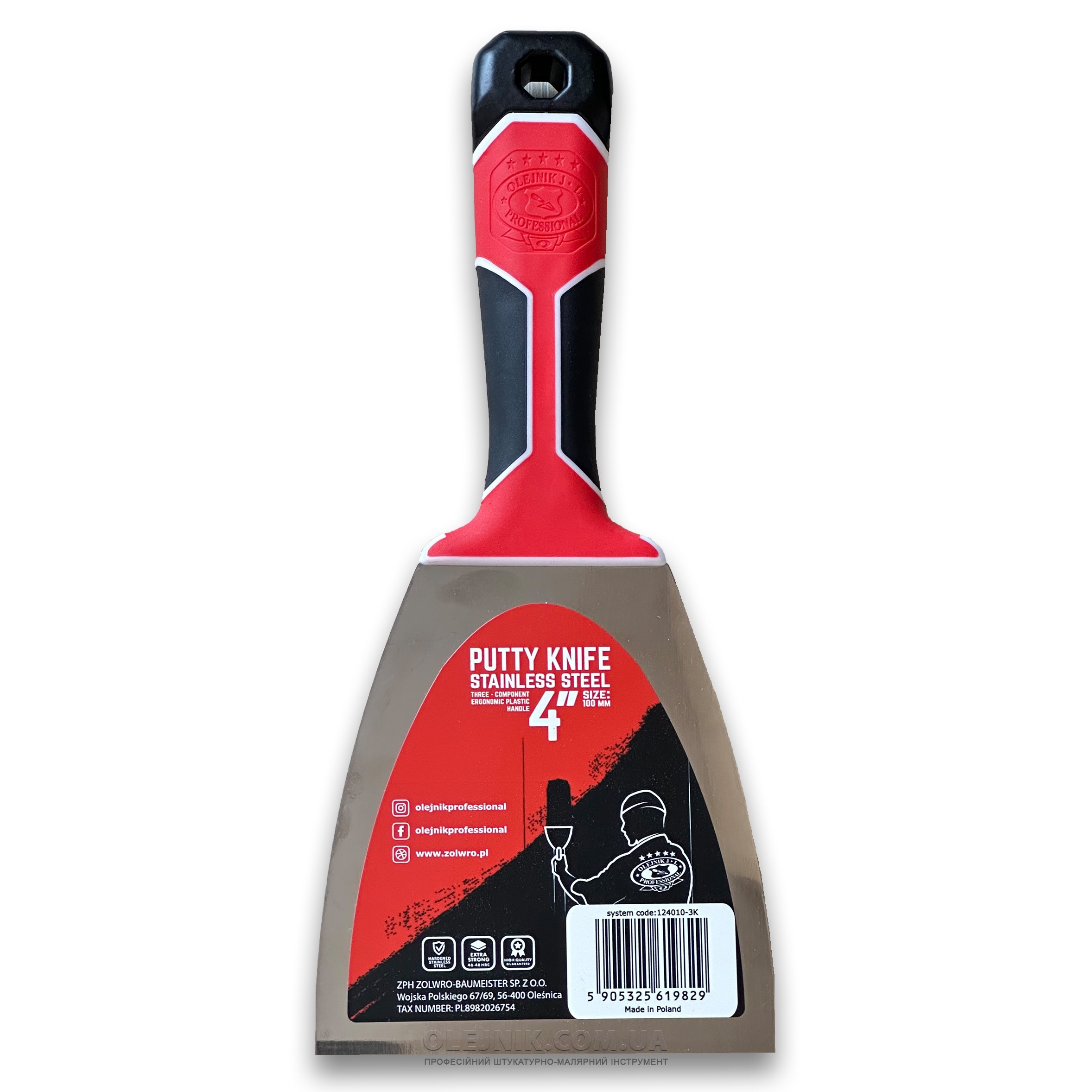 Шпатель 100мм із загартованої нержавіючої сталі з ергономічною трьохкомпонентною ручкою OLEJNIK