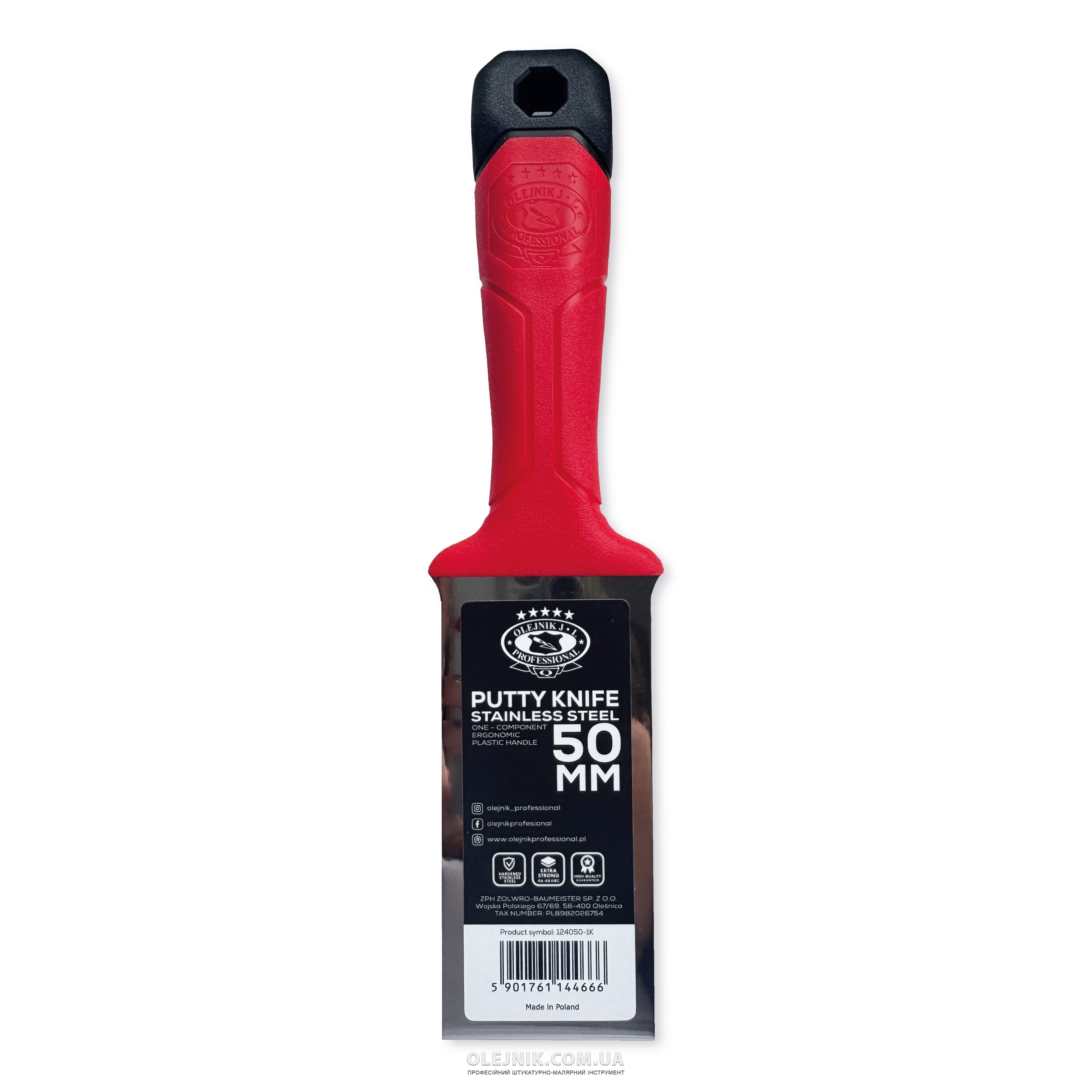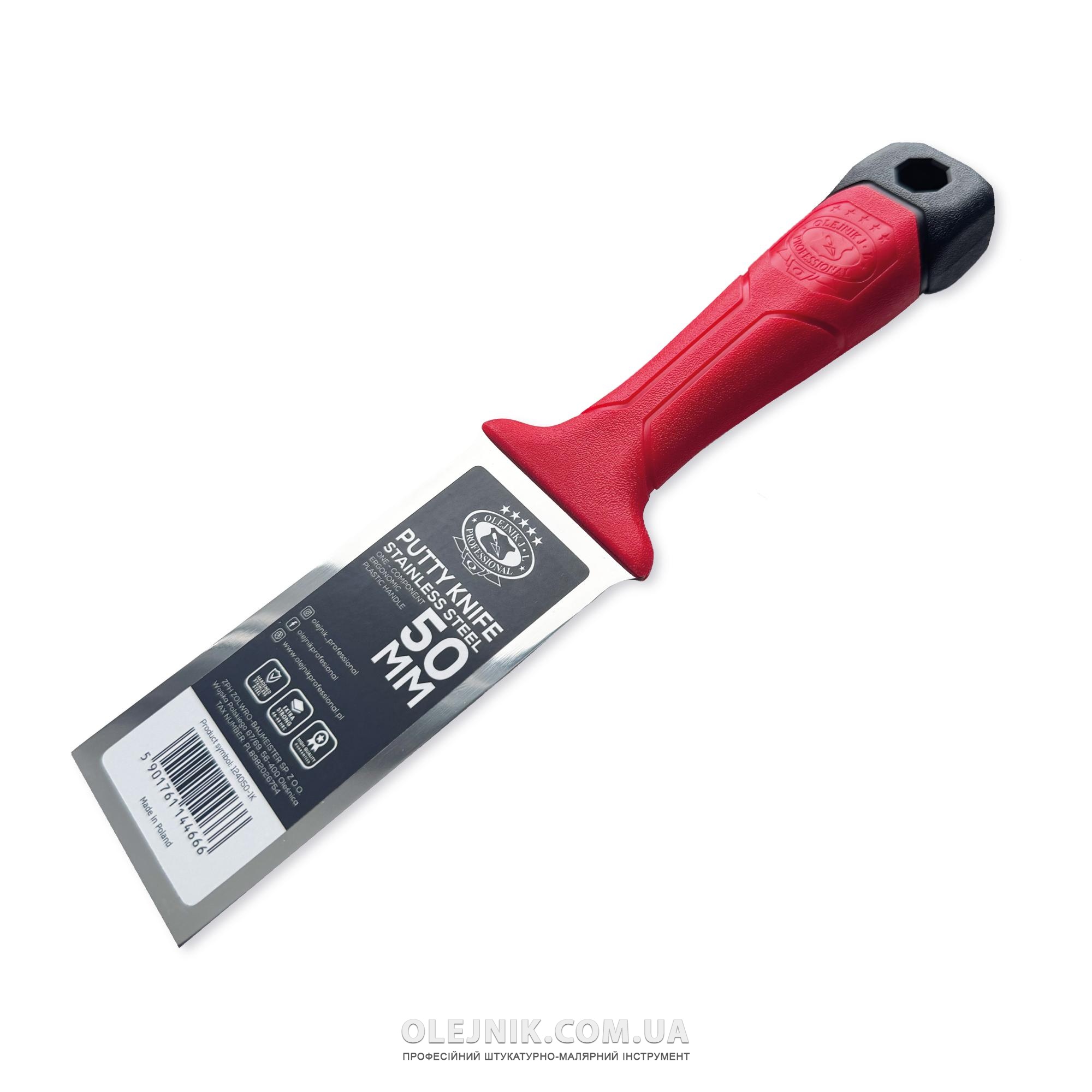 Однокомпонентний шпатель 50мм із загартованої нержавіючої сталі із ергономічною формою OLEJNIK