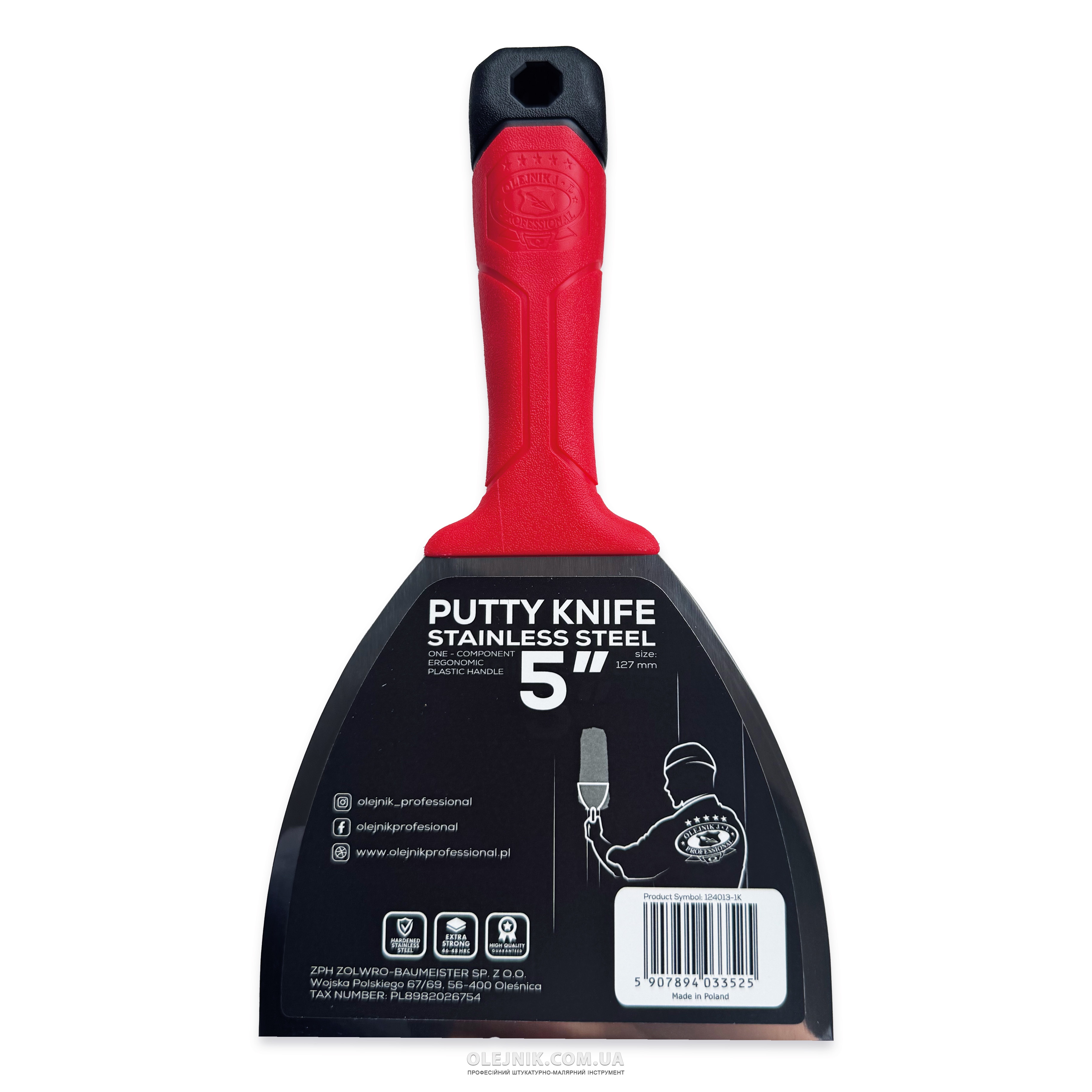 Однокомпонентний шпатель 130мм із загартованої нержавіючої сталі із ергономічною формою OLEJNIK