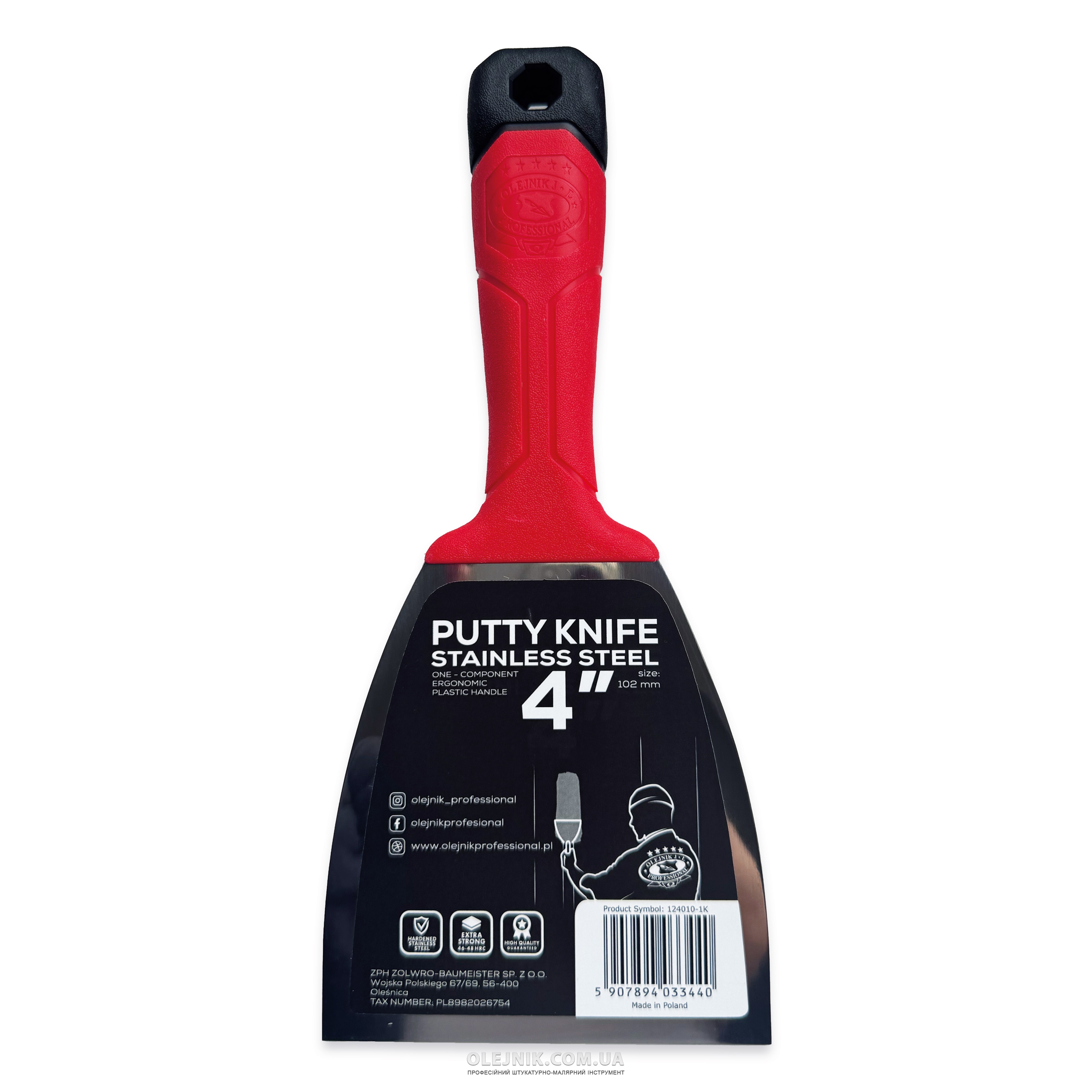 Однокомпонентний шпатель 100мм із загартованої нержавіючої сталі із ергономічною формою OLEJNIK