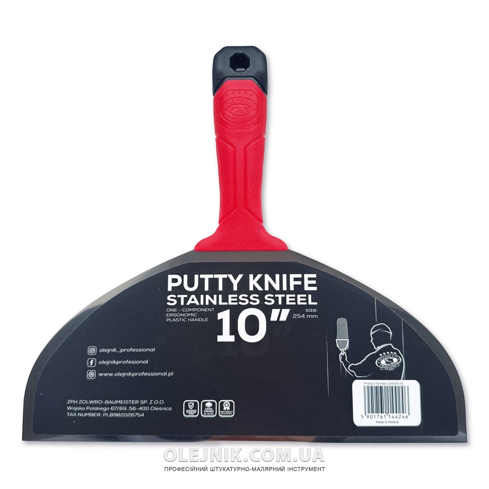 Однокомпонентний шпатель 250мм із загартованої нержавіючої сталі із ергономічною формою OLEJNIK