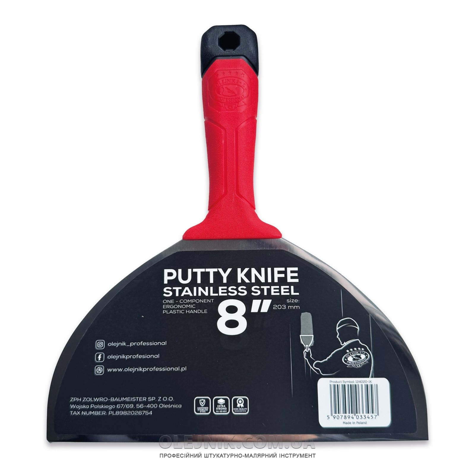 Однокомпонентний шпатель 200мм із загартованої нержавіючої сталі із ергономічною формою OLEJNIK
