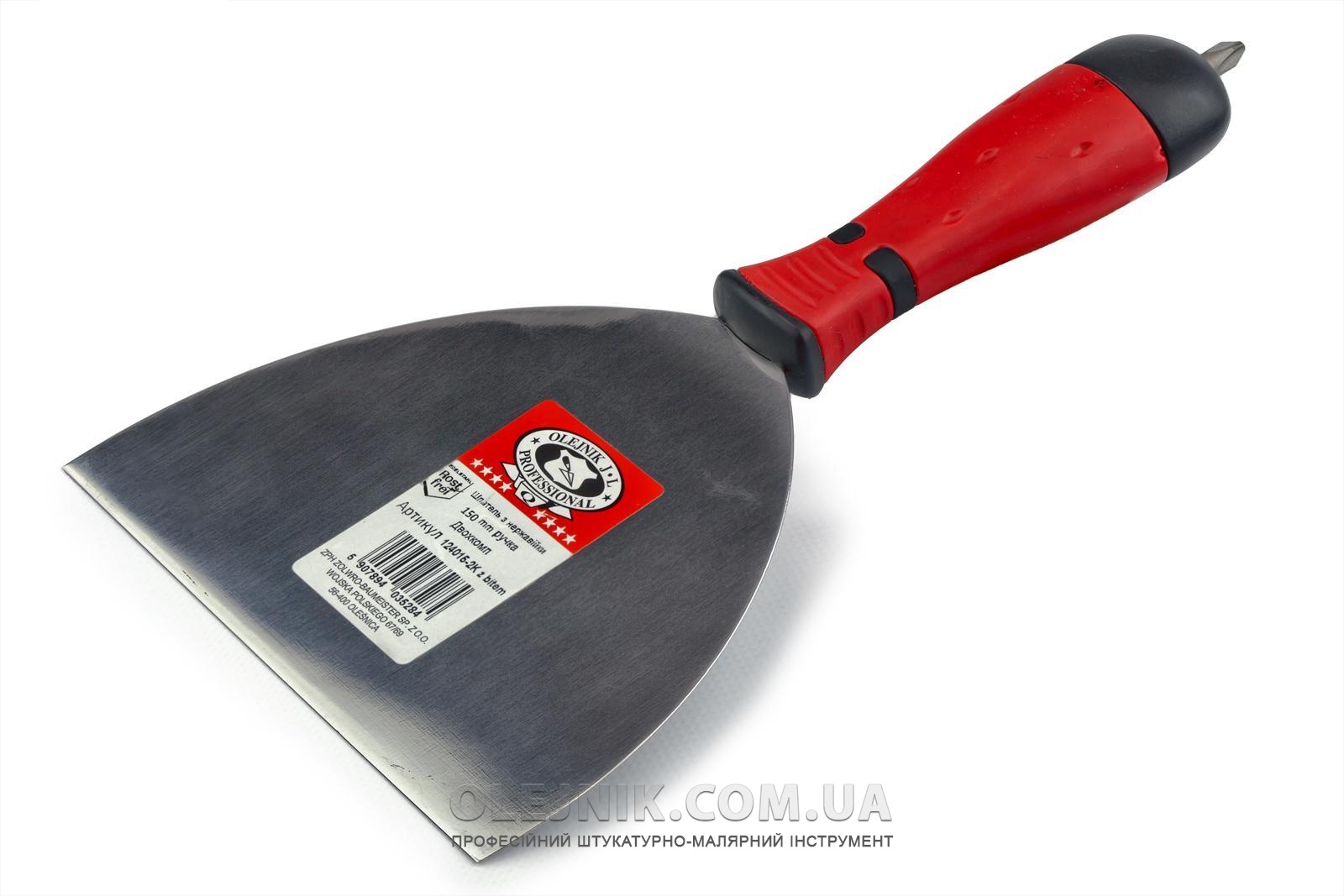 Шпатель з нержавійки 150мм для гіпсокартону з бітою ручка Двохкомпонентна OLEJNIK